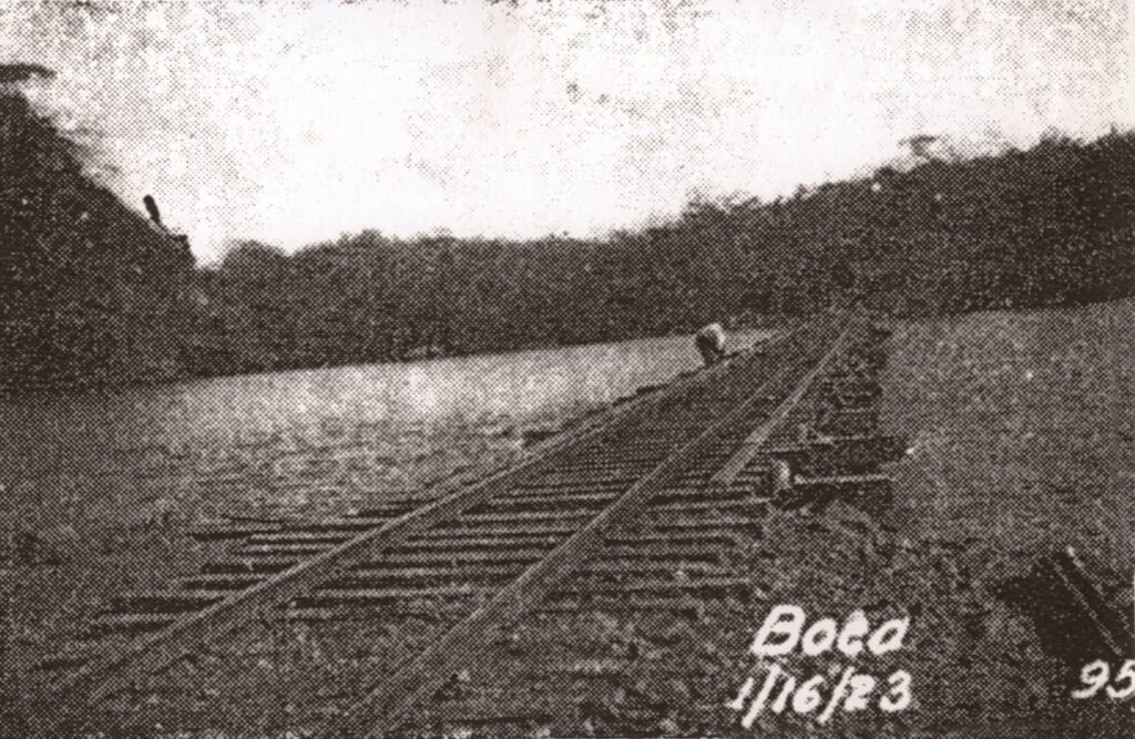 Los durmientes y lista posiblemente fueron retirados. De lo contrario, se encuentran debajo de una capa de sedimentos de al menos medio metro de espesor.